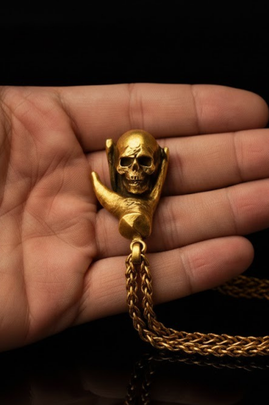 Skull Large 1" (2.5 cm) Pendant | Symbol of Resilience & Strength | Handmade in 925 Sterling Silver, 24k Gold Plated, Copper
