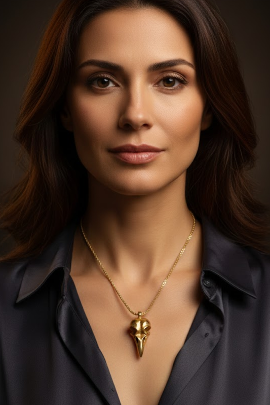 Raven Skull Necklace | Symbol of Wisdom, Transformation & Mystery | Handmade in 925 Sterling Silver, 24K Gold Plated, Copper
